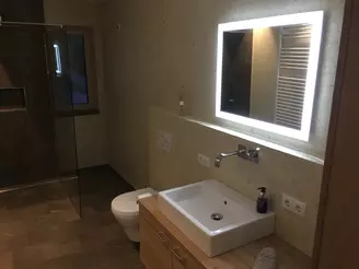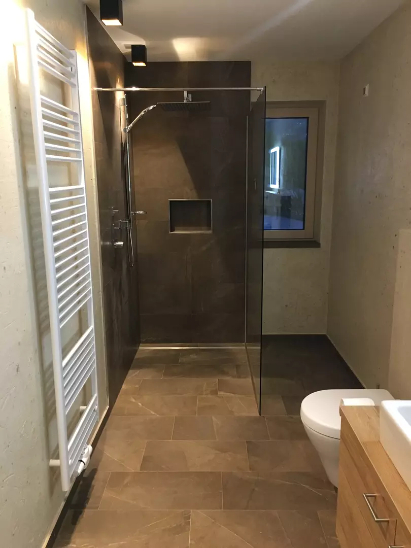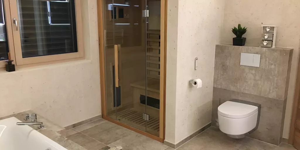 Von besonderem Stil zeugt eine verbaute, bodengleiche Dusche, die nur durch eine kristallklare Glaswand vom restlichen Bad separiert wird. Auf diese Weise wirkt Ihr neues Wellness-Zentrum insgesamt noch großzügiger. Eine Rainforest-Dusche mit innovativen Seitenbrausen halten eine fantastische Überraschung bereit: die Massagefunktion für unvergleichliche Duscherlebnisse. Optimal zur besseren Regeneration: eine Infrarot- und Wärmekabine.