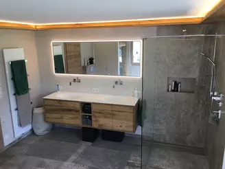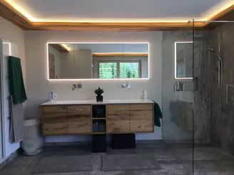 Als Experte für Sanitär & Bäder wissen wir, wie wichtig maximale Ausnützung verfügbarer Flächen sein kann. Waschtischunterschränke, Spiegel- oder Badschränke bilden in modularer Zusammensetzung die perfekte Basis. Diese ergeben ein harmonisches Gesamtbild und bieten obendrein genügend Staufläche – damit Sie das Wichtigste schnell griffbereit haben.
